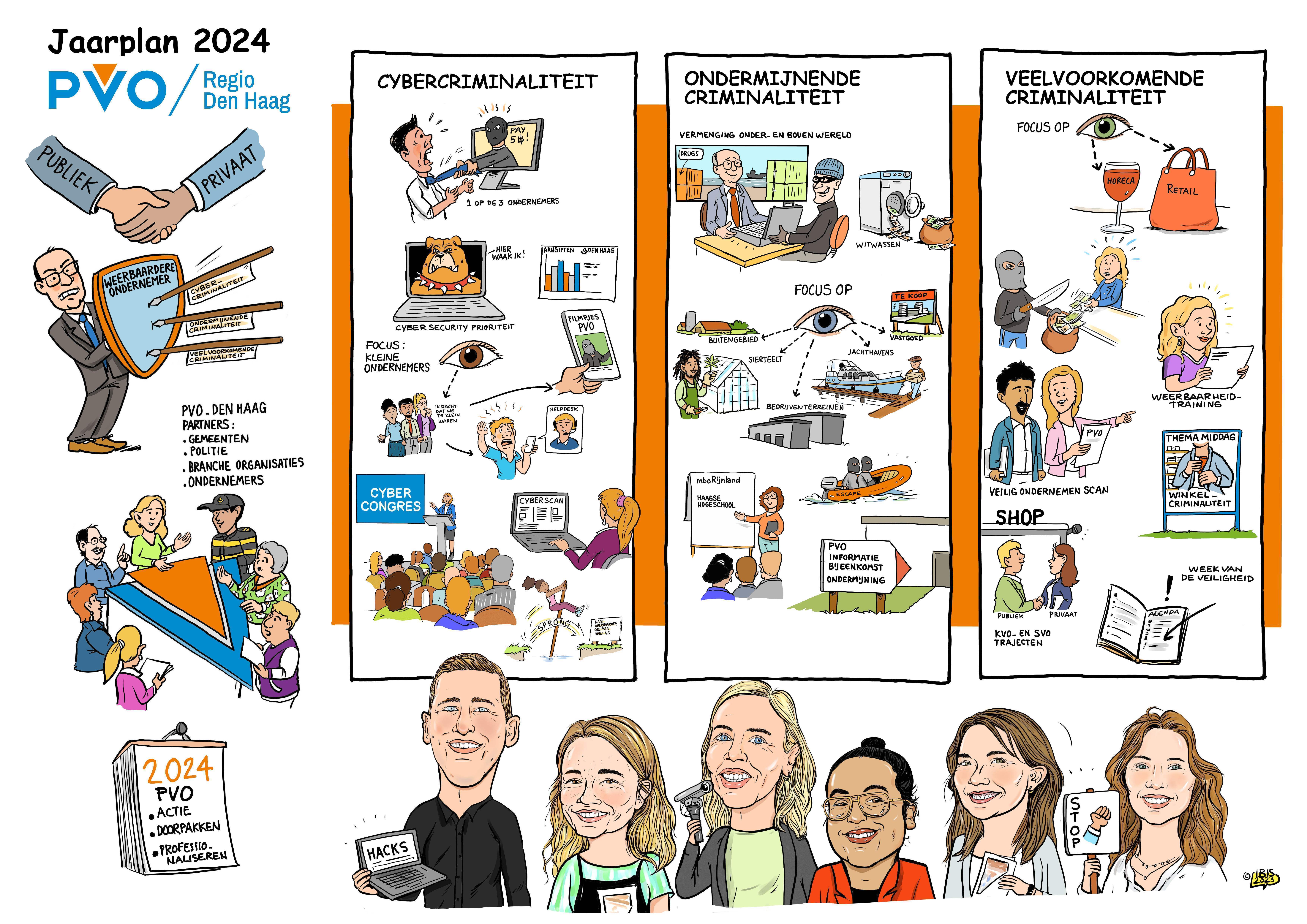 Voor een veilig ondernemersklimaat werken politie, justitie, gemeenten, brancheorganisaties en ondernemers samen aan veiligheidsproblemen door criminaliteit in kaart te brengen. Samen kijken ze wat nodig is: preventieve maatregelen, repressieve maatregelen of een mix.
